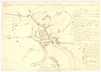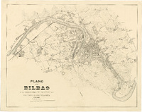 Plano de la jurisdicción y proyecto de ensanche de la villa de Bilbao / [Cuerpo de Estado Mayor del Ejército] Mención de responsabilidad y fecha tomadas del catálogo del SGE: "Región Vasco-Navarro. Provincias de Alava y Vizcaya. Siglos XVI a XIX". 1968, p. 129. Escala también dada en forma grafica de 400 metros. Orientado al norte geográfico. Orografía por curvas de nivel equidistantes 2,5 metros. Tabla de signos convencionales para indicar el límite de la jurisdicción, las estaciones de la línea de perímetro y las clases de edificios. Toponimia de las principales calles de la villa. Delineado a varias tintas. El documento SGE-Ar.F-T.1-C.3-130 es una reducción a 1:5000 de calles. Delineado en varios colores. El documento SGE-Ar.F-T.1-C.3-130 es una reducción a 1:5000 de éste