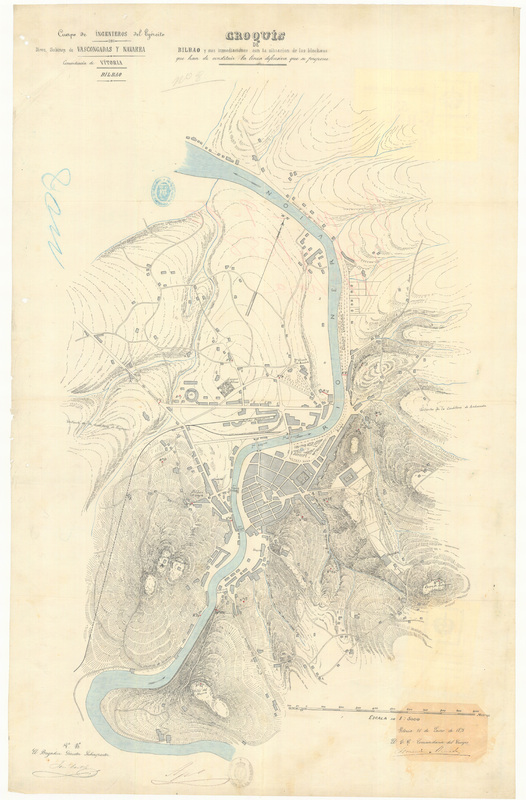 Croquis de 1873. Bilbao y sus inmediaciones con la situacion de los blockaus que han de constituir la linea defensiva que se propone
