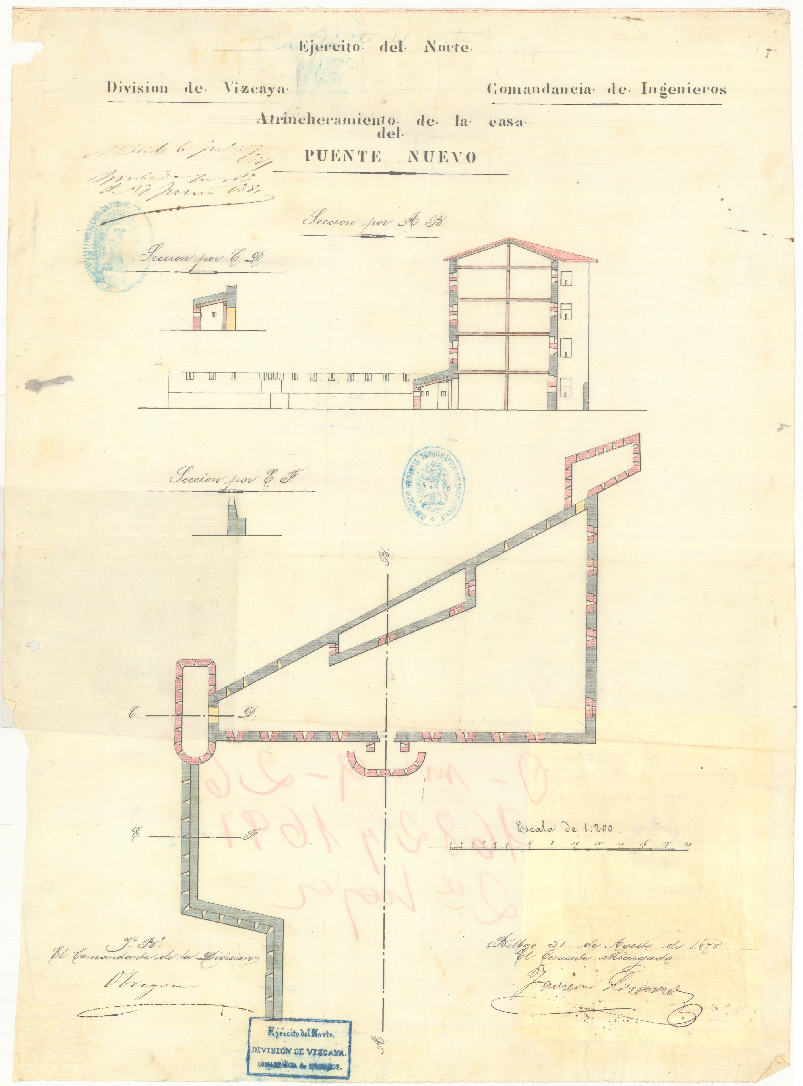 Atrincheramiento de la casa del Puente Nuevo : [Bilbao] Ejército del Norte División de Vizcaya, Comandancia de Ingenieros ; El Teniente Encargado Javier Losarcos