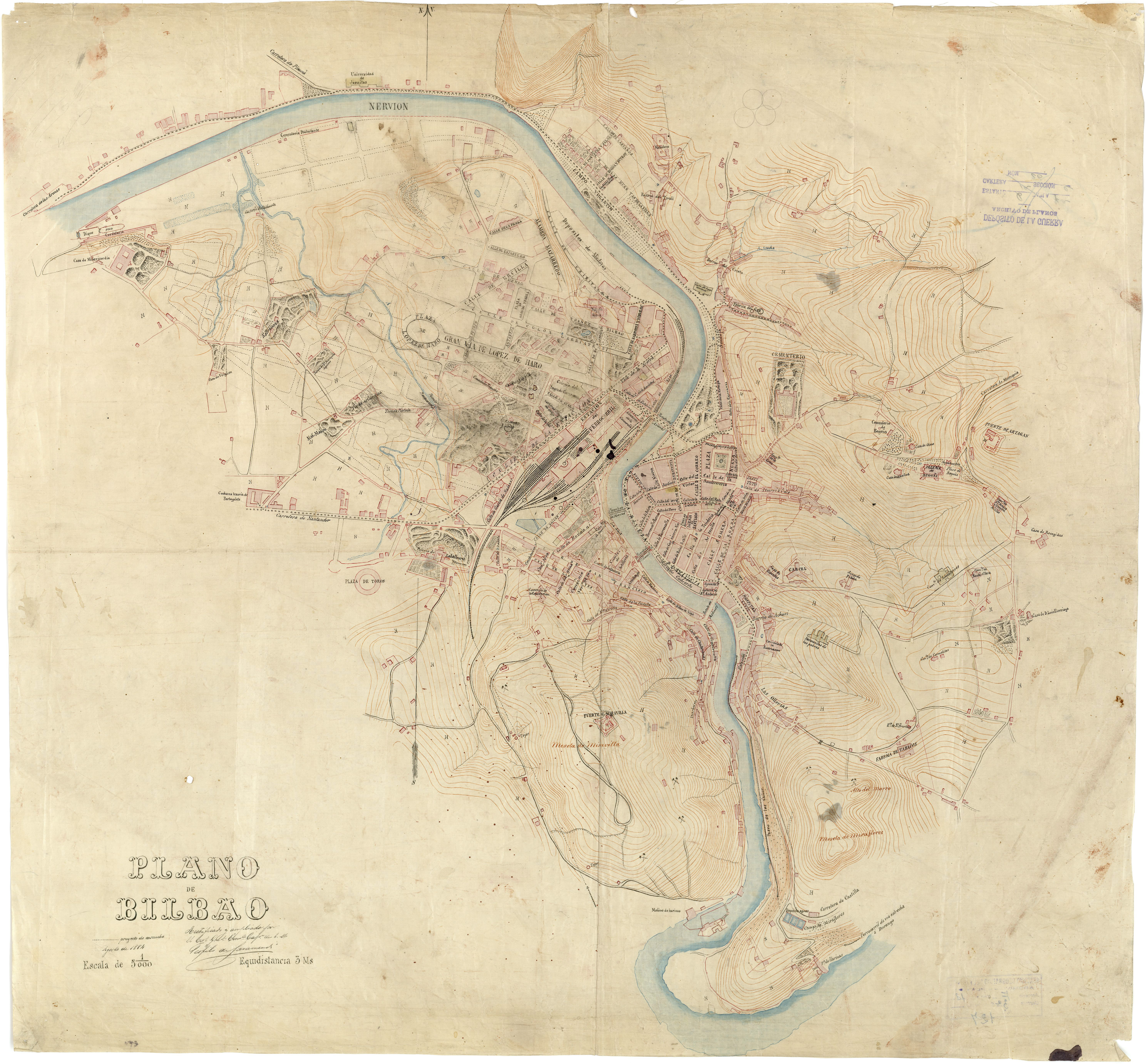 Plano de Bilbao Rectificado y ampliado por el Cor. Grado. Coma. Capn. de E.M. Teofilo de Garamendi, Agosto de 1884