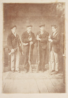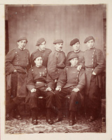 Voluntarios auxiliares Retrato de grupo de voluntarios auxiliares y defensores liberales de Bilbao durante El Sitio carlista de 1874. Retrato realizado en un decorado improvisado, atribuido a Carlos Monney.