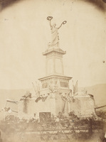 Cimetière de Mallona Plan général du monument aux Martyrs de la Liberté, décoré de deux enfants à ses pieds. Ce monument a été érigé au cimetière Mallona de Bilbao en l'honneur des défenseurs de la ville lors des différents sièges carlistes.