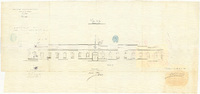 Vista de la Fachada pral. : [del cuartel de San Francisco de Bilbao] / Comanda. Gral. Subinspon. de Vascongadas, Comanda. de Bilbao... ; José Gomez Manuscrito firmado, rubricado y fechado en Bilbao. 'Examinado El Comandante Gral. Subinspector Felipe de la... [y] El Ingeniero Comandante Paulino Aldaz', con firma y rúbrica. Manuscrito a plumilla en tinta negra. Figura en la parte superior izquierda 'Hoja 4' y debajo 'Madrid 25 Nov. 1878. Aprobado por R.O. de 21 del actual'. Se dispone además de los documentos SH+560/VIZ-G-3/9 al SH+560/VIZ-G-3/11 y del SH+560/VIZ-G-3/13 al SH+560/VIZ-G-3/14 correspondientes al plano, planta, secciones, detalles y proyección horizontal del cuartel