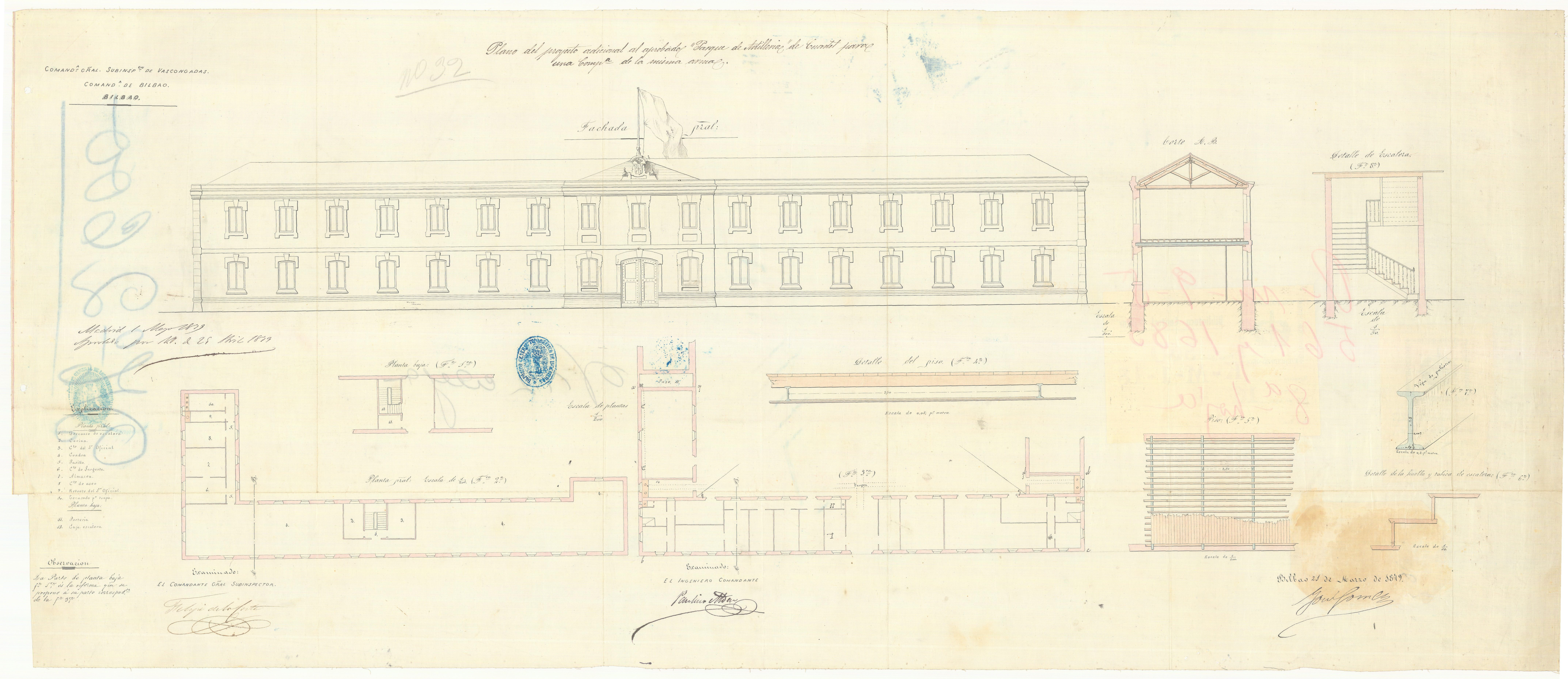 Plano del proyecto adicional al aprobado 'Parque de Artilleria' de Cuartel para una Campa. de la misma arma : [Bilbao] / Comana. Gral. Subinspon. de Vascongadas, Comanda. de Bilbao... ; Jon Gomez