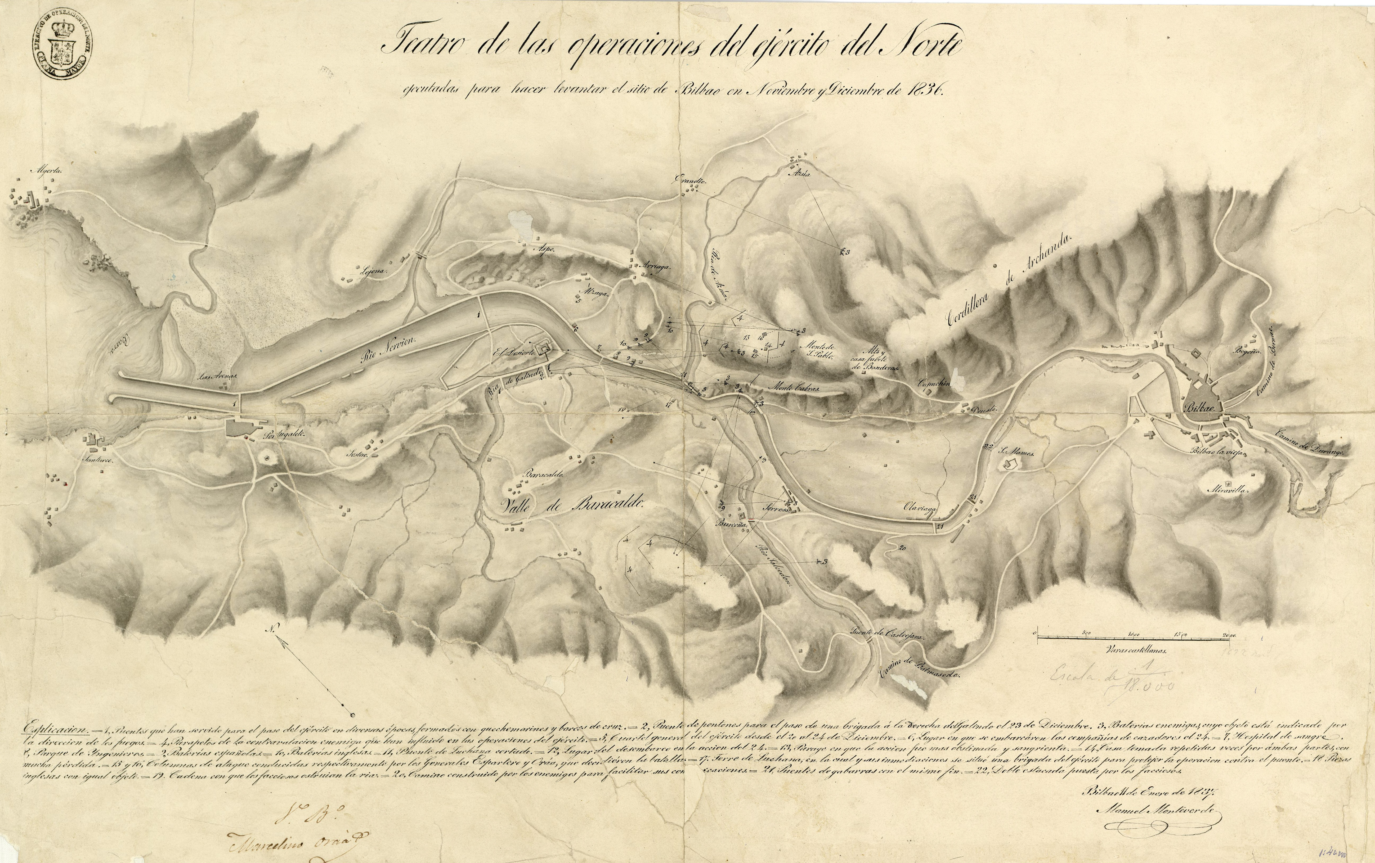 Teatro de las operaciones del ejército del Norte ejecutadas para hacer levantar el sitio de Bilbao en Noviembre y Diciembre de 1836 / Bilbao 11 de Enero de 1837 Manuel Monteverde