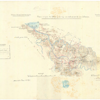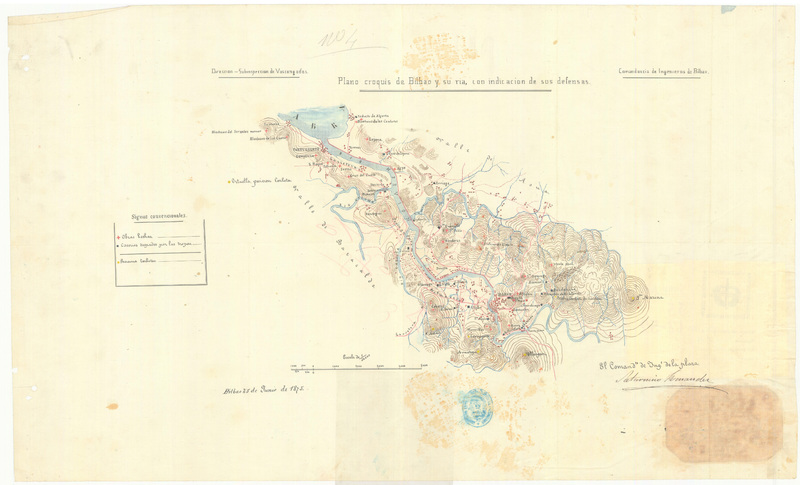 Plano croquis de Bilbao y su ría, con indicación de sus defensas