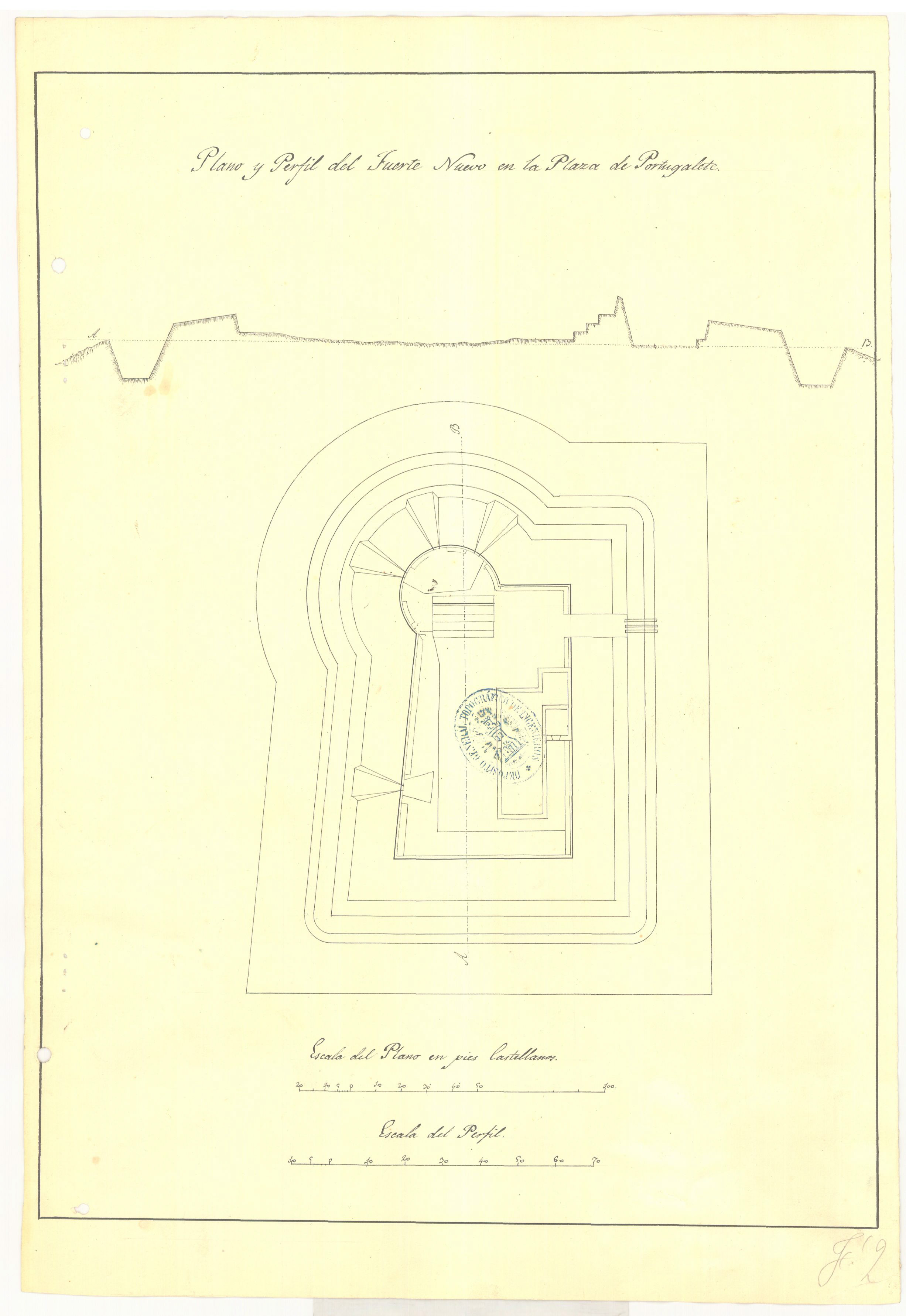 Plano y perfil del Fuerte Nuevo en la Plaza de Portugalete
